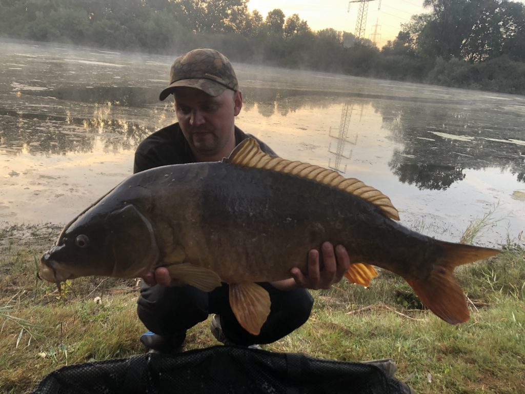 Jetzt wird erst mal gefrühstückt und über den Vormittag beginnt leider auch schon das Einpacken. Um 11 Uhr hat CHristian tatsächlich noch einen dritten Run, und verhaftet wenig später eine herrlichen, langgestreckten Schuppi. Wahnsinn! Drei Tage fischen und alle Fische kommen am letzten Morgen… Tja, das ist Karpfenangeln!